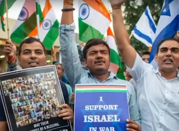 بھارت میں انتہا پسند ہندوؤں کی اسرائیل کے حق میں ریلی نکالی گئی جس سے مودی حکومت کی مسلم دشمنی بے نقاب ہوگئی۔