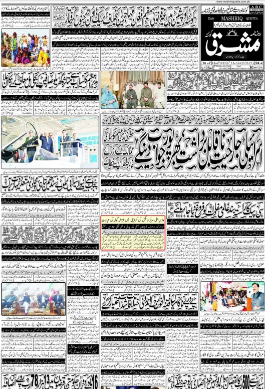 Daily Mashriq Quetta. 15-09-2025 On ستمبر 15, 2025 Share Mashriq 15th September 2025 Share FacebookTwitterGoogle+ReddItWhatsAppPinterestEmail