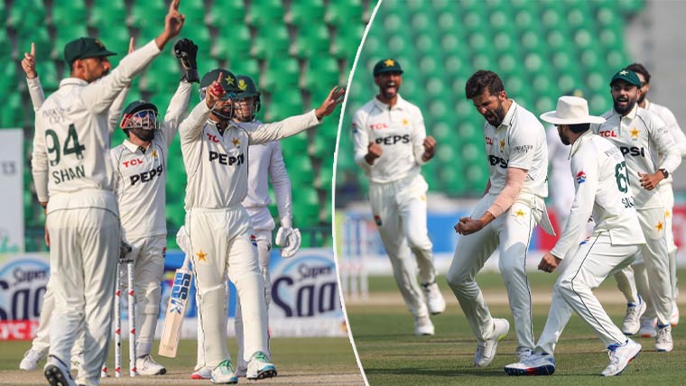 پاکستان کی جانب سے نعمان علی نے 6 وکٹیں اپنے نام کیں جبکہ ساجد خان نے 3 اور سلمان علی آغا نے ایک وکٹ حاصل کی۔