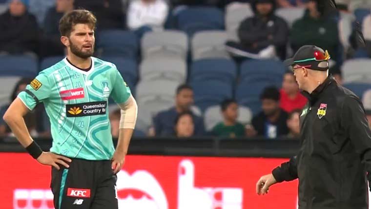 بولنگ سے ہٹائے جانے کے بعد شاہین آفریدی کے چہرے پر ہلکی مسکراہٹ دیکھی گئی جبکہ برسبین ہیٹ کے کپتان نیتھن میک سویینی کو اوور کی آخری دو گیندیں خود کروانی پڑیں۔