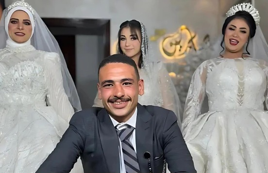مصر میں شادی کی ایک ایسی تقریب کے چرچے ہیں جس میں دلہا ایک تھا اور دلہنیں تین تھیں اور بے حد خوش بھی نظر آ رہی تھیں۔