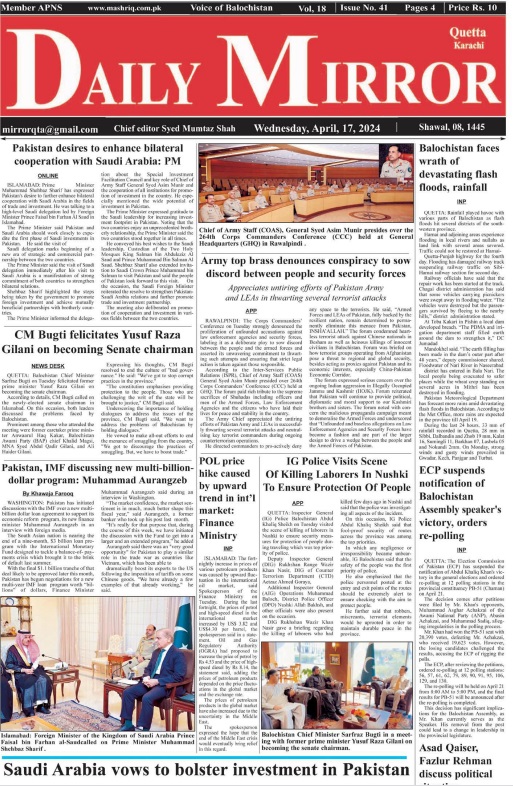 Daily Mirror Quetta. 17-04-2024 On اپریل 16, 2024 Share Daily Mirror Quetta (1) Share FacebookTwitterGoogle+ReddItWhatsAppPinterestEmail