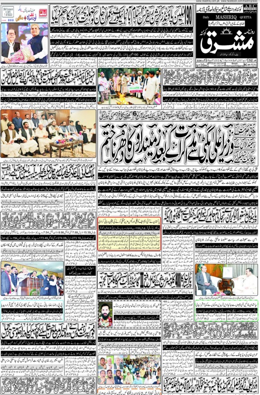 Daily Mashriq Quetta. 16-05-2024 On مئی 16, 2024 Share Mashriq 16 Share FacebookTwitterGoogle+ReddItWhatsAppPinterestEmail
