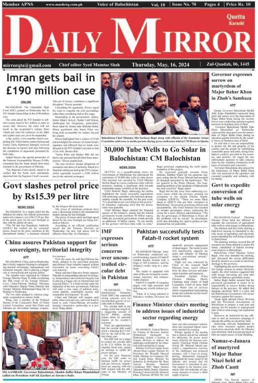 Daily Mirror Quetta. 16-05-2024 – Daily Mashriq Newspaper Quetta