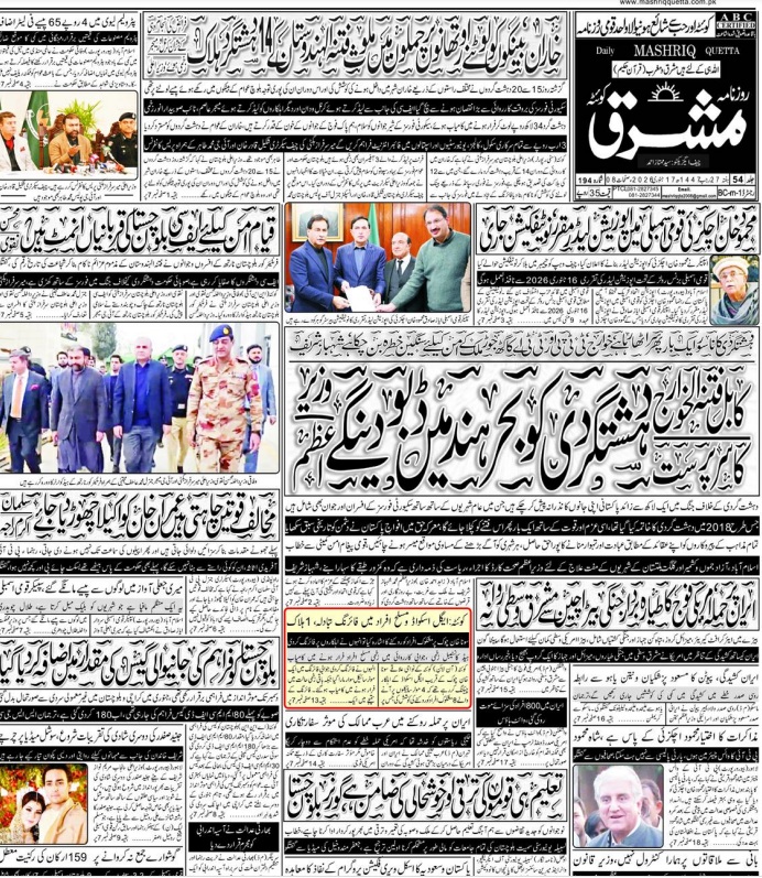 Daily Mashriq Quetta. 17-01-2025 – Daily Mashriq Newspaper Quetta