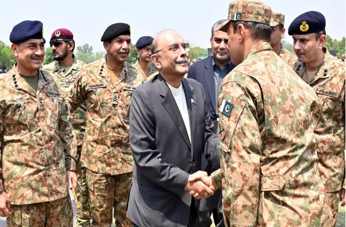 پاک فوج کے شعبہ تعلقات عامہ (آئی ایس پی آر) سے جاری بیان میں کہا گیا کہ صدرمملکت آصف علی زرداری نے گجرانوالہ کنٹونمنٹ کا دورہ کیا، ان کے ہمراہ وفاقی وزیرداخلہ محسن نقوی بھی تھے، آرمی چیف جنرل عاصم منیر نے ان کا استقبال کیا اور اس موقع پر کور کمانڈرز منگلہ اور گجرانوالہ بھی موجود تھے۔