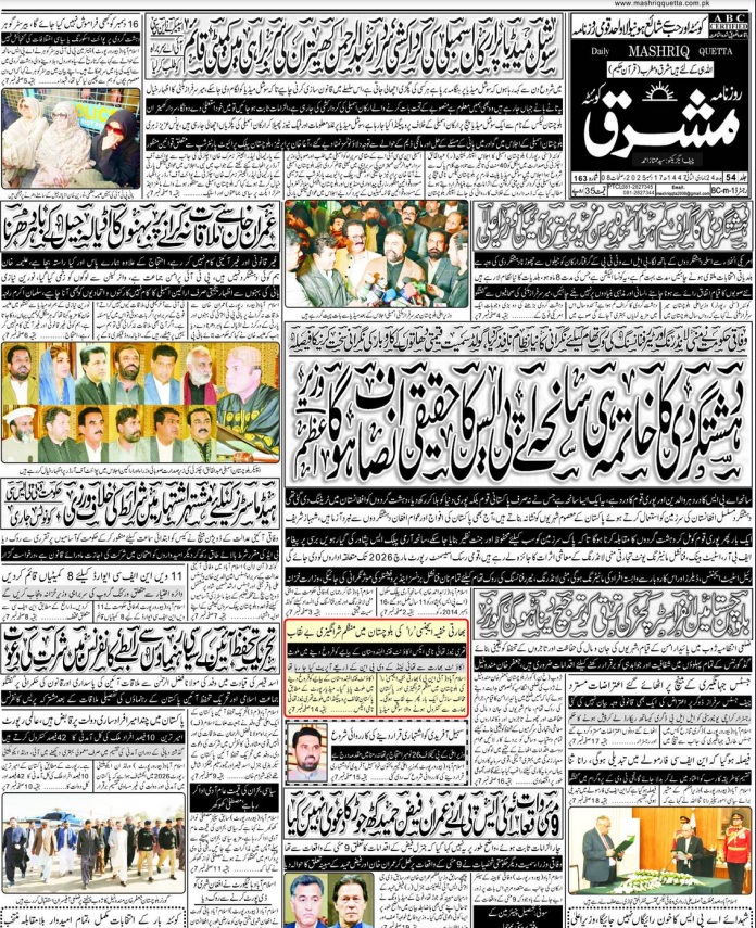 Daily Mashriq Quetta. 17-12-2025 On دسمبر 17, 2025 Share Mashriq 17 December 2025 Share FacebookTwitterGoogle+ReddItWhatsAppPinterestEmail