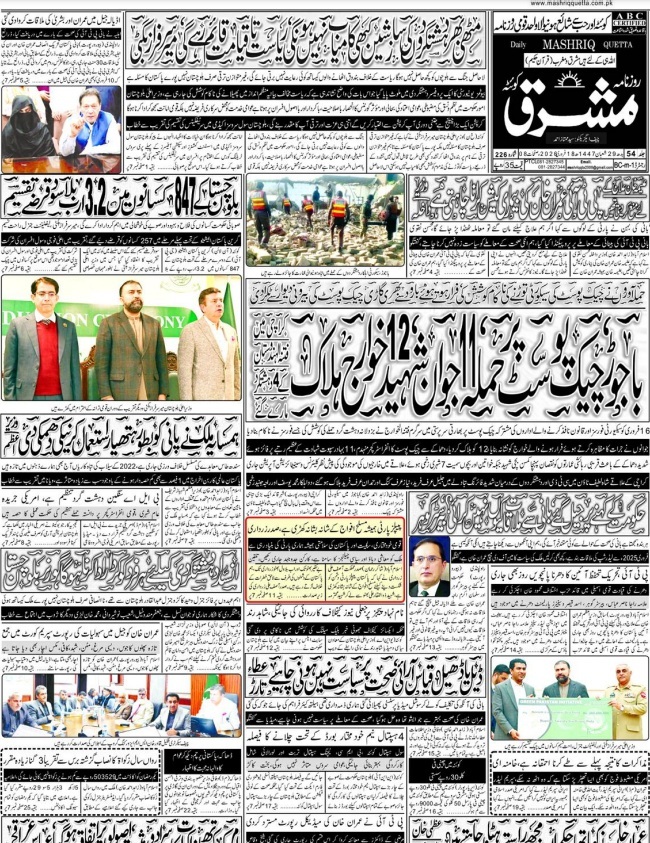 Daily Mashriq Quetta. 18-02-2026 On فروری 18, 2026 Share Mashriq 18 Fab 2026 Share FacebookTwitterGoogle+ReddItWhatsAppPinterestEmail
