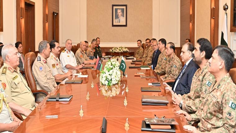 فیلڈ مارشل سید عاصم منیر سے لیبیا کے کمانڈر انچیف جنرل صدام خلیفہ حفتر نے ملاقات کی جس میں سکیورٹی چیلنجز سے نمٹنے کے لیے دفاعی شعبے میں تعاون اور تکنیکی تجربات کے تبادلے پر اتفاق کیا گیا۔