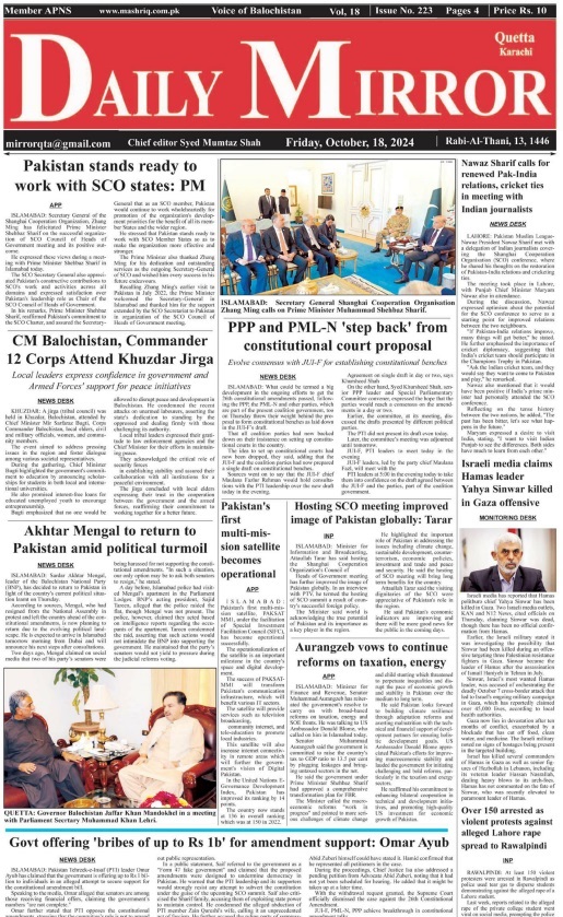 Daily Mirror Quetta. 18-10-2024 On اکتوبر 18, 2024 Share Daily Mirror Quetta Share FacebookTwitterGoogle+ReddItWhatsAppPinterestEmail