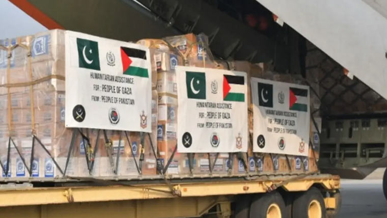 وزیر اعظم کی ہدایت پر غزہ کے بہن بھائیوں کی امداد کا سلسلہ جاری ہے، پاکستان کی جانب سے 100 ٹن امدادی سامان غزہ روانہ کردیا گیا۔