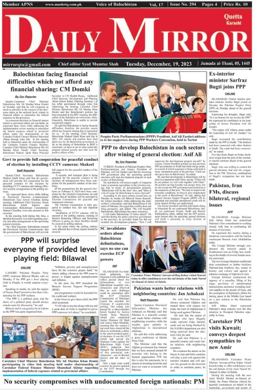 Daily Mirror Quetta. 19-12-2023 On دسمبر 18, 2023 Share Daily Mirror Quetta Share FacebookTwitterGoogle+ReddItWhatsAppPinterestEmail