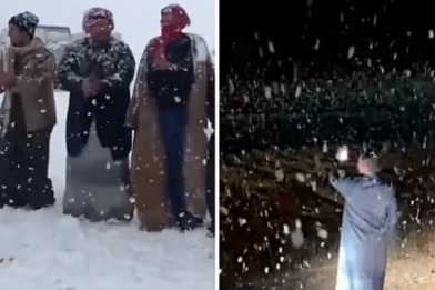 اسٹورم سینٹر کی جانب سے شیئر کی گئی ایک ویڈیو میں ایک گاڑی کو برف سے ڈھکا ہوا دیکھا جا سکتا ہے۔ سعودی عرب کے شمال مغربی علاقے جبل اللوز میں بھی برفباری ہوئی، جہاں بچوں اور بڑوں کو برف میں کھیلتے، گاتے اور خوشی مناتے دیکھا گیا۔