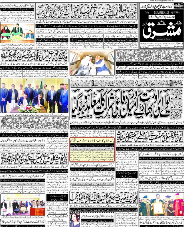 Daily Mashriq Quetta. 20-01-2026 On جنوری 20, 2026 Share Mashriq 20 Januray 2026 Share FacebookTwitterGoogle+ReddItWhatsAppPinterestEmail