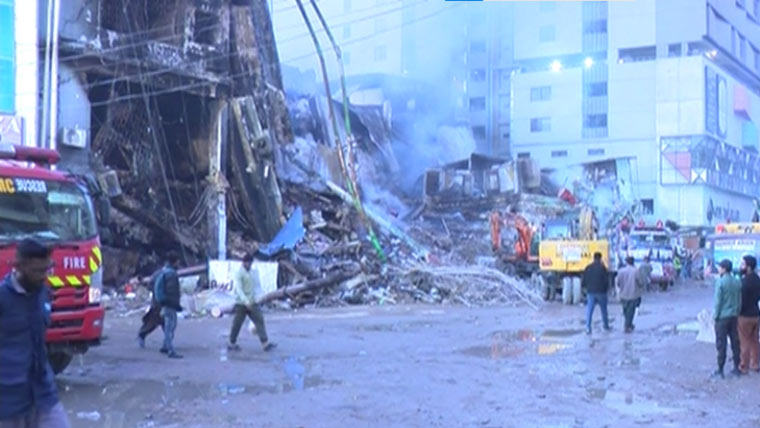 ریسکیو حکام کے مطابق کراچی کے ایم اے جناح روڈ پر واقعہ خوفناک آتشزدگی سے جل جانے والے گل پلازے میں ریسکیو آپریشن جاری ہے، دو اطراف سے ہیوی مشینری کے ذریعے ملبہ اٹھانے کا کام جاری ہے، ریسکیو اہلکار متاثرہ عمارت کے بیشتر حصوں میں داخل ہو چکے ہیں، دھوئیں اور تپش کے باعث امدادی کارروائیوں میں دشواری کا سامنا کرنا پڑ رہا ہے۔