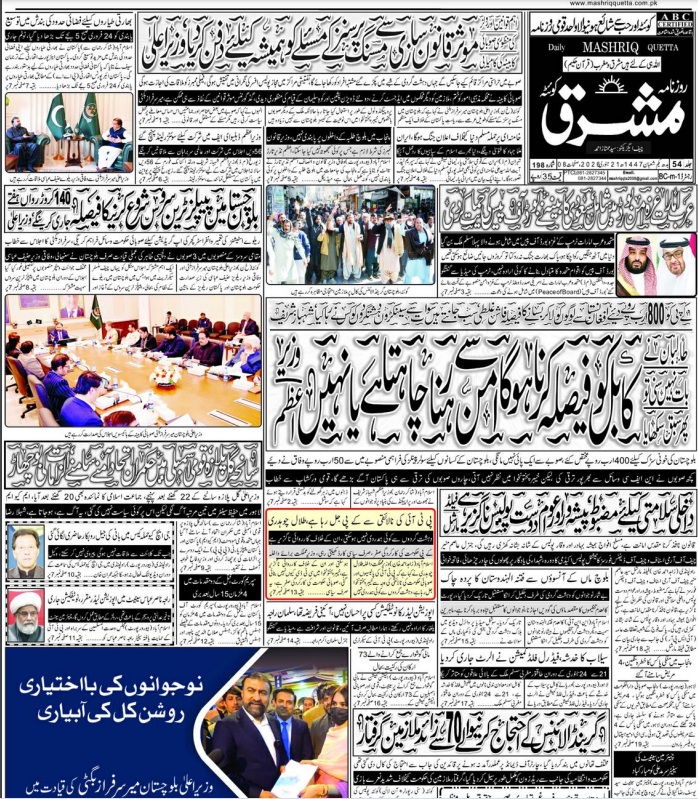 Daily Mashriq Quetta. 21-01-2026 – Daily Mashriq Newspaper Quetta