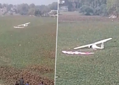 عینی شاہدین نے بتایا کہ ایک چھوٹا طیارہ فضا میں جھولتے ہوئے تالاب میں گرا اور آدھا ڈوب گیا جب کہ اس میں کوئی شخص موجود نہیں ہے۔