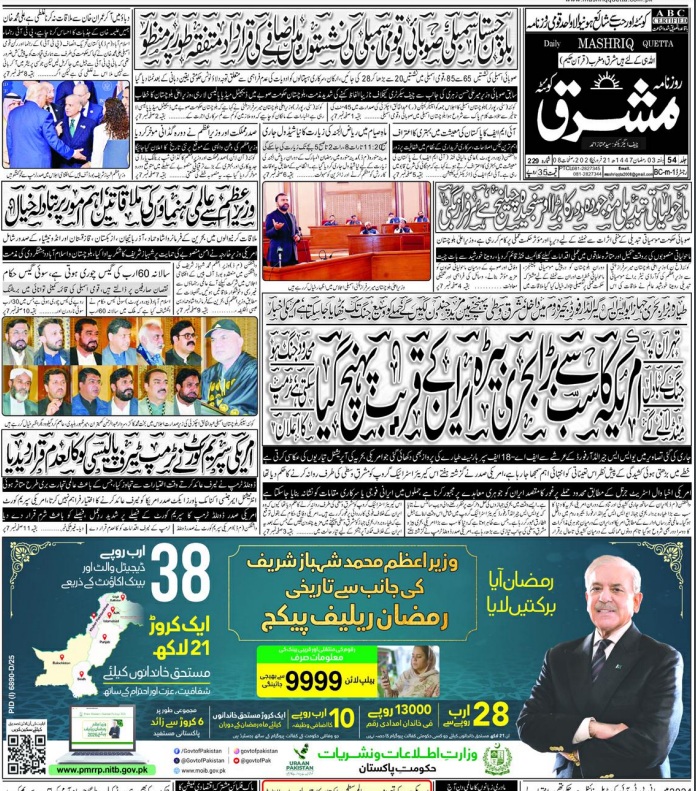 Daily Mashriq Quetta. 21-02-2026 On فروری 21, 2026 Share Mashriq 21 Feb 2026 Share FacebookTwitterGoogle+ReddItWhatsAppPinterestEmail
