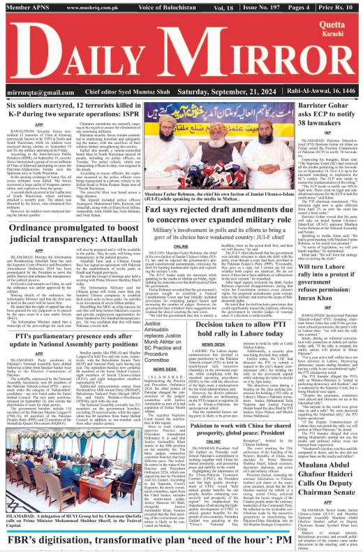 Daily Mirror Quetta. 21-09-2024 On ستمبر 21, 2024 Share Daily Mirror Quetta Share FacebookTwitterGoogle+ReddItWhatsAppPinterestEmail