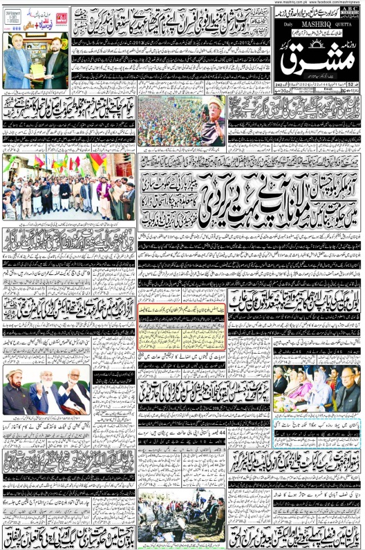 Daily Mashriq Quetta. 22-02-2024 – Daily Mashriq Newspaper Quetta