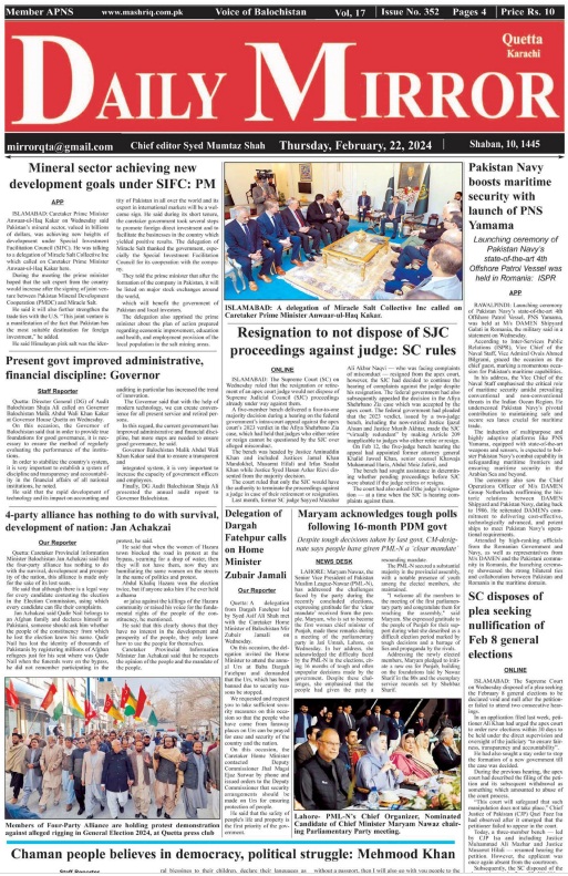 Daily Mirror Quetta. 22-02-2024 On فروری 22, 2024 Share Daily Mirror Quett Share FacebookTwitterGoogle+ReddItWhatsAppPinterestEmail