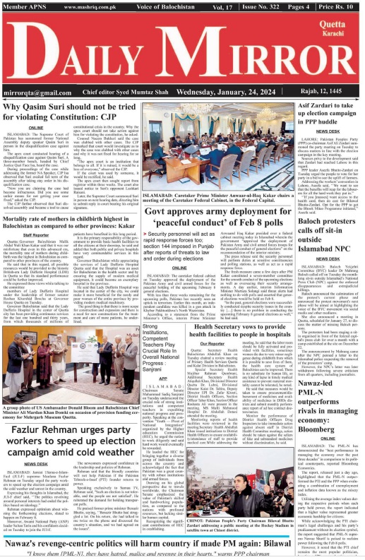 Daily Mirror Quetta. 24-01-2024 On جنوری 23, 2024 Share Daily Mirror Quetta (1) Share FacebookTwitterGoogle+ReddItWhatsAppPinterestEmail