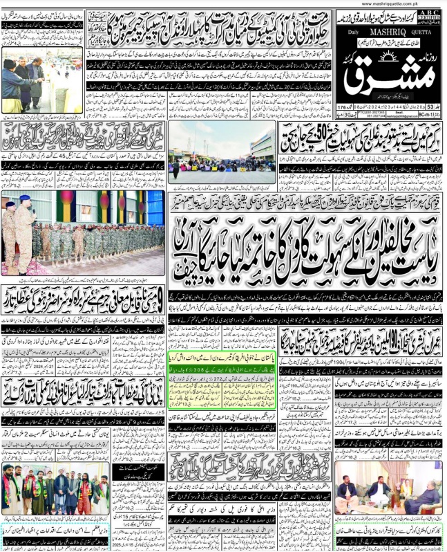 Daily Mashriq Quetta. 23-12-2024 On دسمبر 23, 2024 Share Mashriq 23 Share FacebookTwitterGoogle+ReddItWhatsAppPinterestEmail