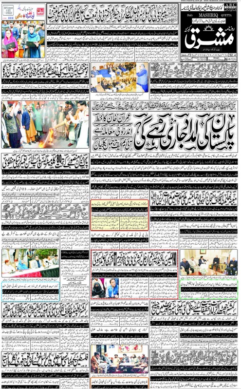 Daily Mashriq Quetta. 24-02-2024 – Daily Mashriq Newspaper Quetta