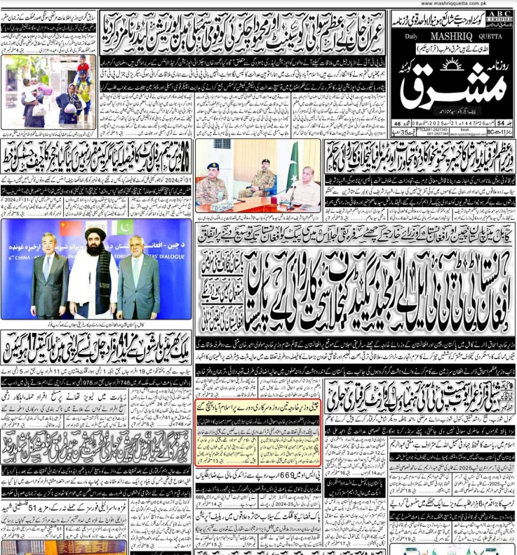 Daily Mashriq Quetta. 21-08-2025 – Daily Mashriq Newspaper Quetta