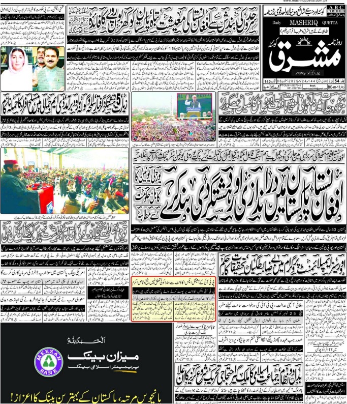 Daily Mashriq Quetta. 24-11-2025 On نومبر 24, 2025 Share Mashriq 24 November 2025 Share FacebookTwitterGoogle+ReddItWhatsAppPinterestEmail