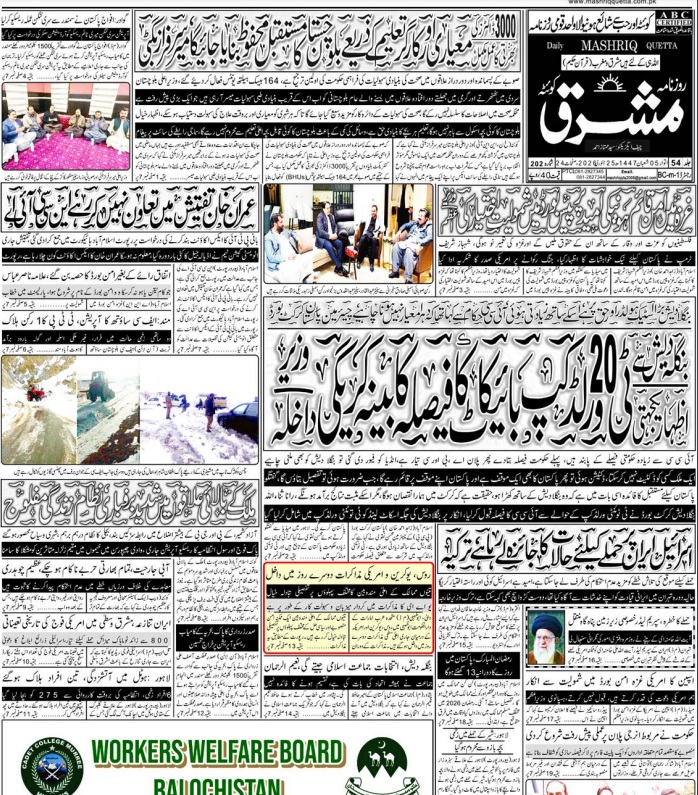 Daily Mashriq Quetta. 25-01-2026 – Daily Mashriq Newspaper Quetta