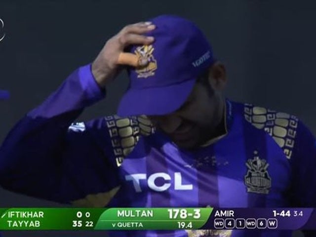 کوئٹہ گلیڈی ایٹرز کے وکٹ کیپر بلے باز سرفراز احمد ملتان سلطانز کیخلاف میچ میں سرپر گیند لگنے سے زخمی ہوگئے۔