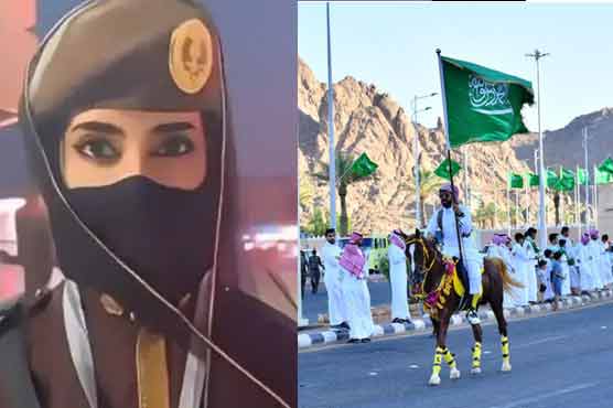 سعودیہ عرب کے یوم تاسیس کی تقریب میں اونٹ پر سوار پہلی خاتون فوجی اہلکارنے توجہ حاصل کر لی۔