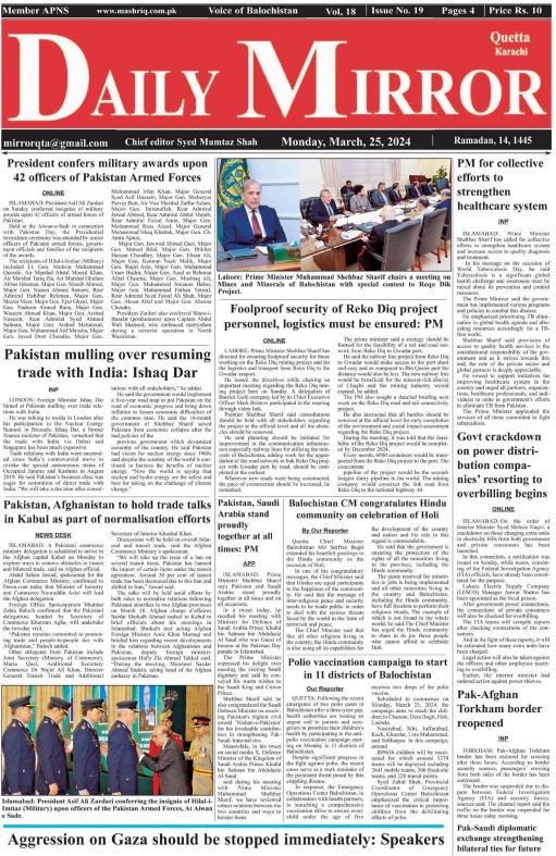 Daily Mirror Quetta. 25-03-2024 On مارچ 25, 2024 Share Daily Mirror Quetta Share FacebookTwitterGoogle+ReddItWhatsAppPinterestEmail