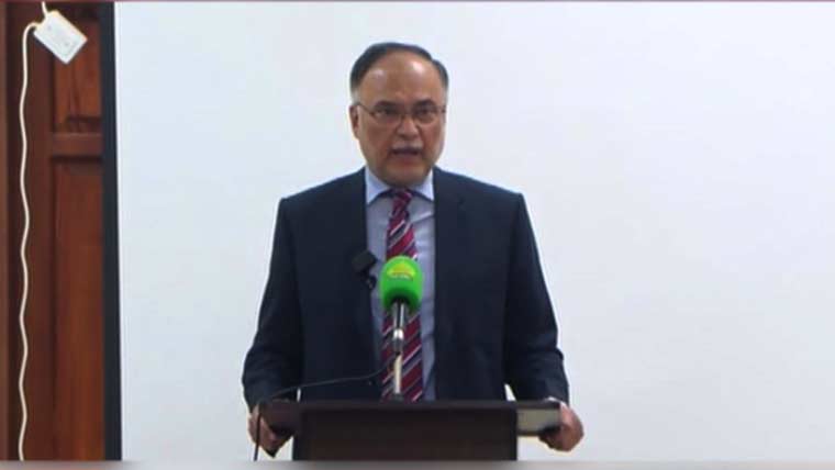 وفاقی دارالحکومت میں تقریب سے خطاب کرتے ہوئے احسن اقبال کا کہنا تھا کہ ملک میں ترقی کے ہرمنصوبے پر مسلم لیگ ن کی تختی لگی ہوئی ہے۔