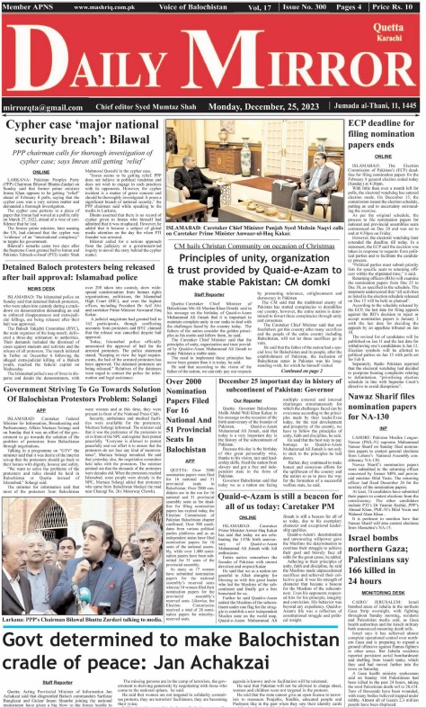 Daily Mirror Quetta. 25-12-2023 On دسمبر 25, 2023 Share Daily Mirror Quetta Share FacebookTwitterGoogle+ReddItWhatsAppPinterestEmail