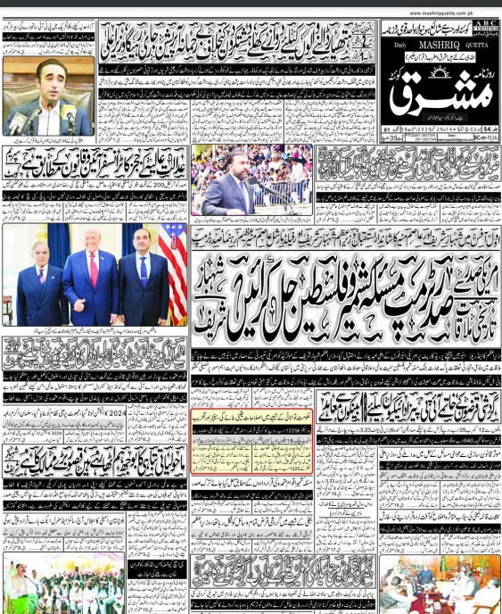 Daily Mashriq Quetta. 26-09-2025 On ستمبر 26, 2025 Share Mashriq 26 Share FacebookTwitterGoogle+ReddItWhatsAppPinterestEmail