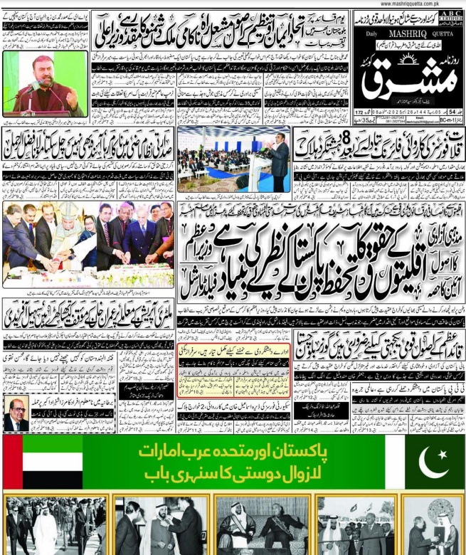 Daily Mashriq Quetta. 26-12-2025 – Daily Mashriq Newspaper Quetta
