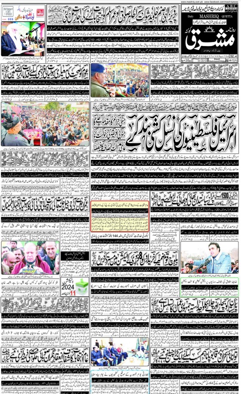 Daily Mashriq Quetta. 27-01-2024 – Daily Mashriq Newspaper Quetta