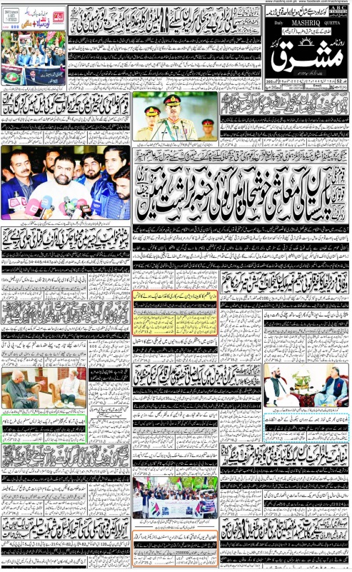 Daily Mashriq Quetta. 27-04-2024 On اپریل 27, 2024 Share Mashriq 27 Share FacebookTwitterGoogle+ReddItWhatsAppPinterestEmail