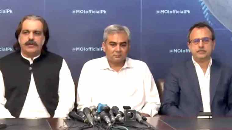 وزیراعلیٰ خیبرپختونخوا علی امین گنڈا پور، وفاقی وزیرداخلہ محسن نقوی، وفاقی وزیر توانائی اویس لغاری نے پریس کانفرنس کی۔