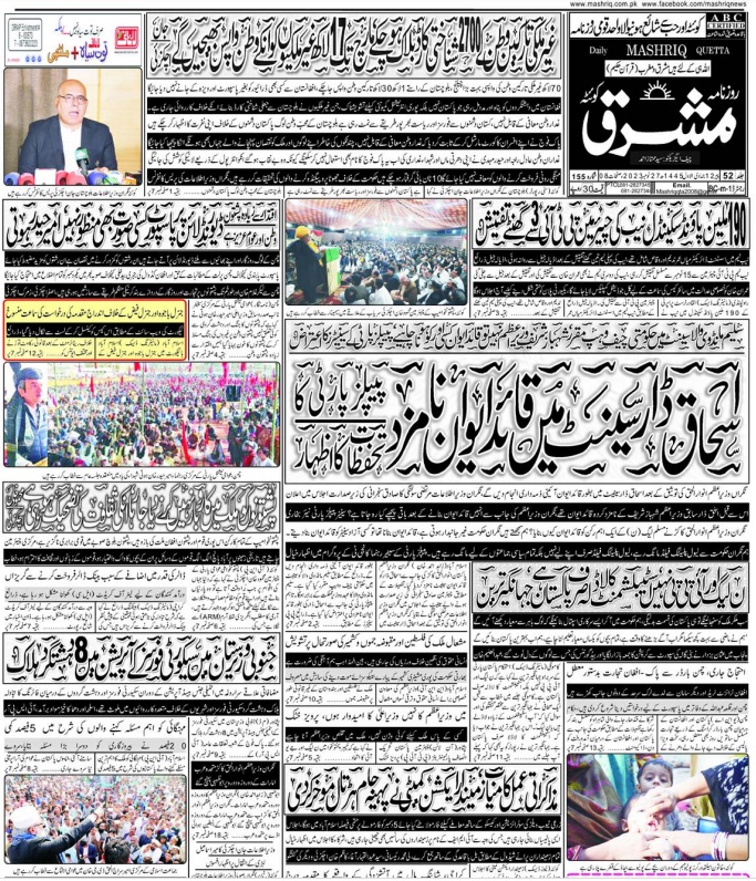 Daily Mashriq Quetta. 27-11-2023 On نومبر 27, 2023 Share Mashriq 27 Share FacebookTwitterGoogle+ReddItWhatsAppPinterestEmail