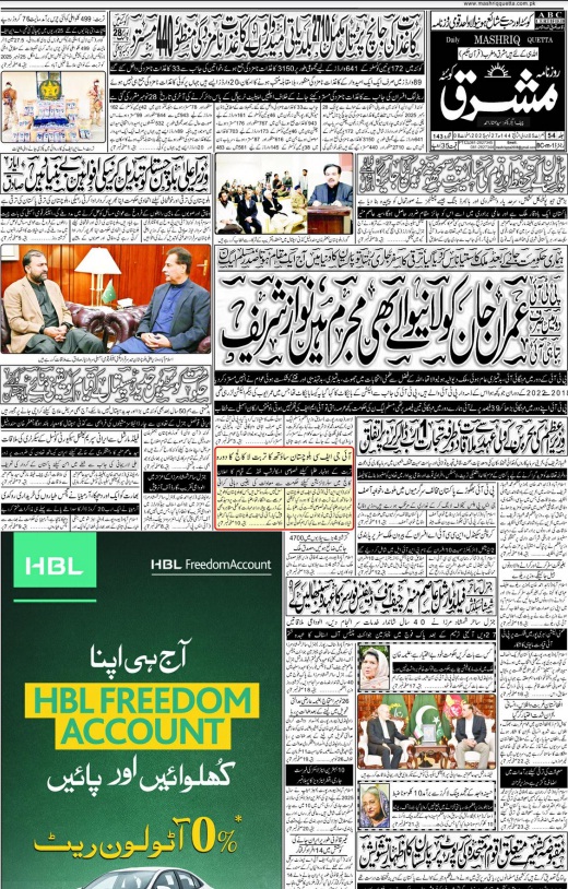Daily Mashriq Quetta. 27-11-2025 On نومبر 27, 2025 Share Mashriq 27 November 2025 Share FacebookTwitterGoogle+ReddItWhatsAppPinterestEmail