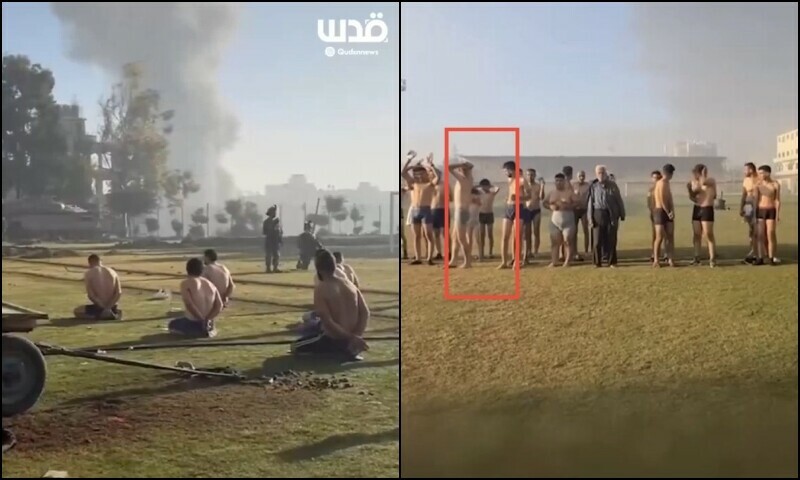 ویڈیو میں دیکھا جاسکتا ہے کہ غزہ کے ایک اسٹیڈیم میں درجنوں فلسطینیوں کو برہنہ کرکے اسرائیلی فوجی انہیں قطار میں کھڑا کرنے کی ہدایات دے رہے ہیں۔
