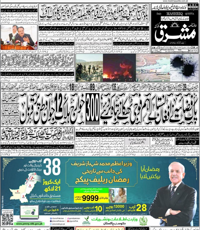 Daily Mashriq Quetta. 28-02-2026 On فروری 28, 2026 Share Mashriq 28 Feb 2026 Share FacebookTwitterGoogle+ReddItWhatsAppPinterestEmail