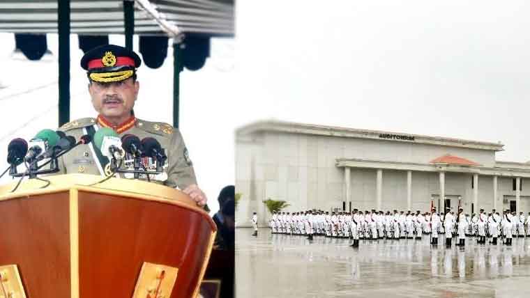شہر قائد میں فیلڈ مارشل سید عاصم منیر کا پی این ایس رہبر میں پاکستان نیوی کی پاسنگ آؤٹ پریڈ سے خطاب کرتے ہوئے کہنا تھا کہ دوست ملک ترکی، بجرین، عراق، فلسطین اور جبوتی کے کامیاب کیڈٹس کو مبارک باد پیش کرتا ہوں ، آپ پاک بحریہ کا حصہ بننے جارہے ہیں ۔