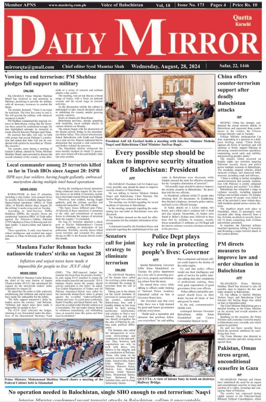 Daily Mirror Quetta. 28-08-2024 – Daily Mashriq Newspaper Quetta