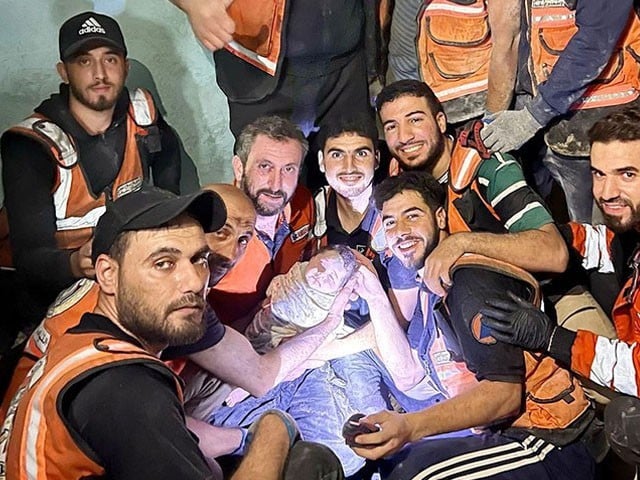 غزہ میں ایک عمارت کے ملبے سے 37 دن بعد نومولود کو نیم مردہ حالت میں برآمد کیا گیا تھا اور اسے 3 گھنٹے تک طبی امداد دی گئی جس کے بعد بچے نے سانسیں لینا شروع کردیں۔