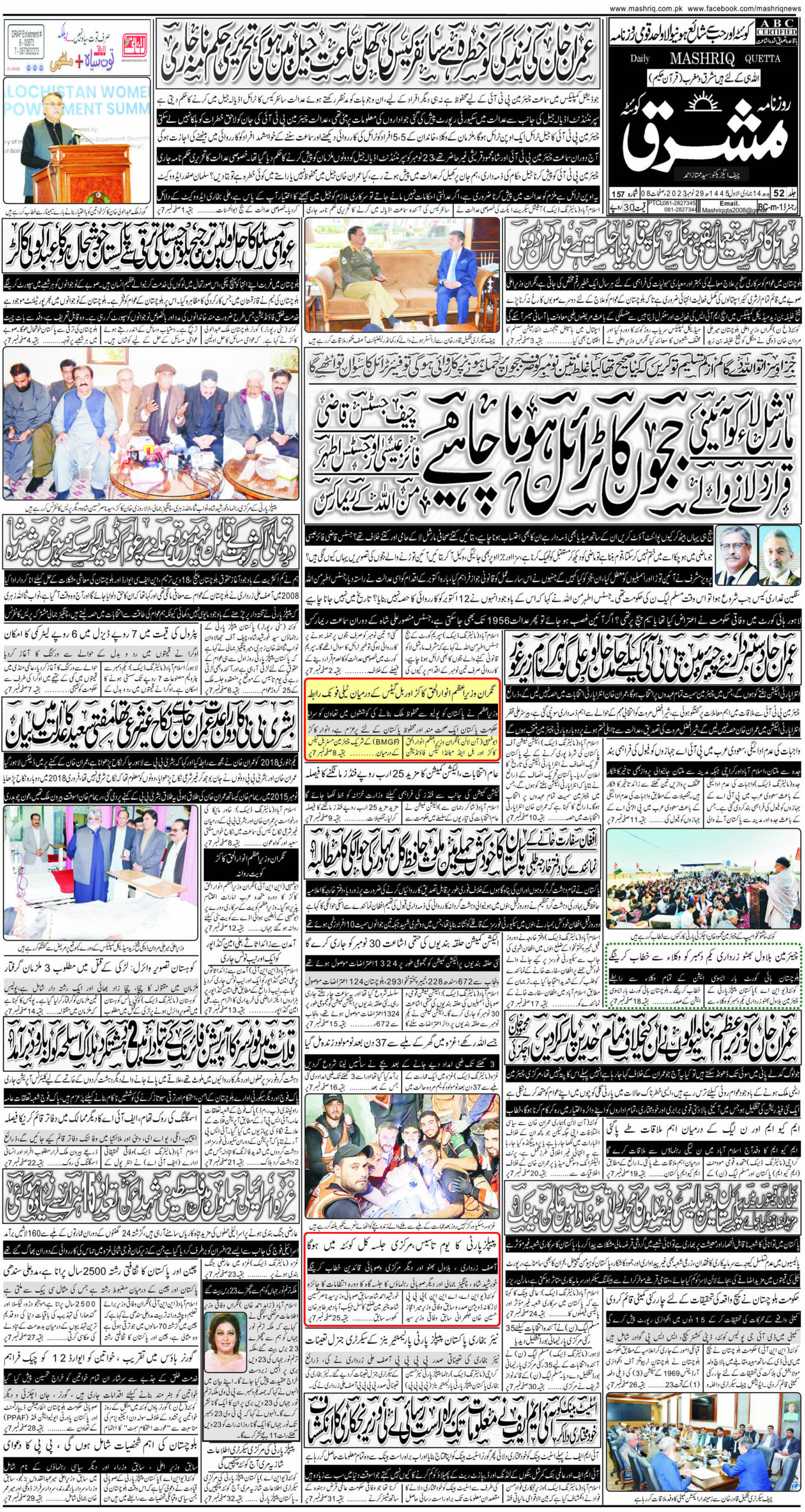 Mashriq 29 Nov – Daily Mashriq Newspaper Quetta