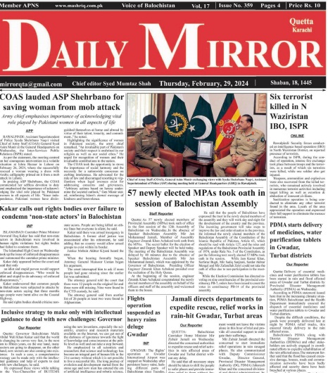 Daily Mirror Quetta. 29-02-2024 – Daily Mashriq Newspaper Quetta